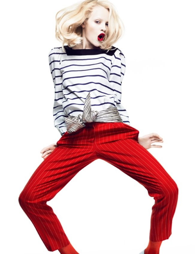 I don’t know if I’m really getting into the Holiday Spirit or if I’m coming down with a case of Holly Golightly’s “mean reds,” but this spread in Numero magazine’s Dec-Jan issue is quite a crimson tide of chic. It showcases the powerful color in all of its brash and bold glory. The racy ruby tights, that brazen brick-red lip and the sexy scarlet extras all make me want to pile on as much rouge as my lil body can handle! And model Ginta Lapina’s playful poses add to the appeal, saying, “Look at all the fun I have with scarlett fever. I jump, I smile, I look sexy and faux puzzled. Hel-lo, red!