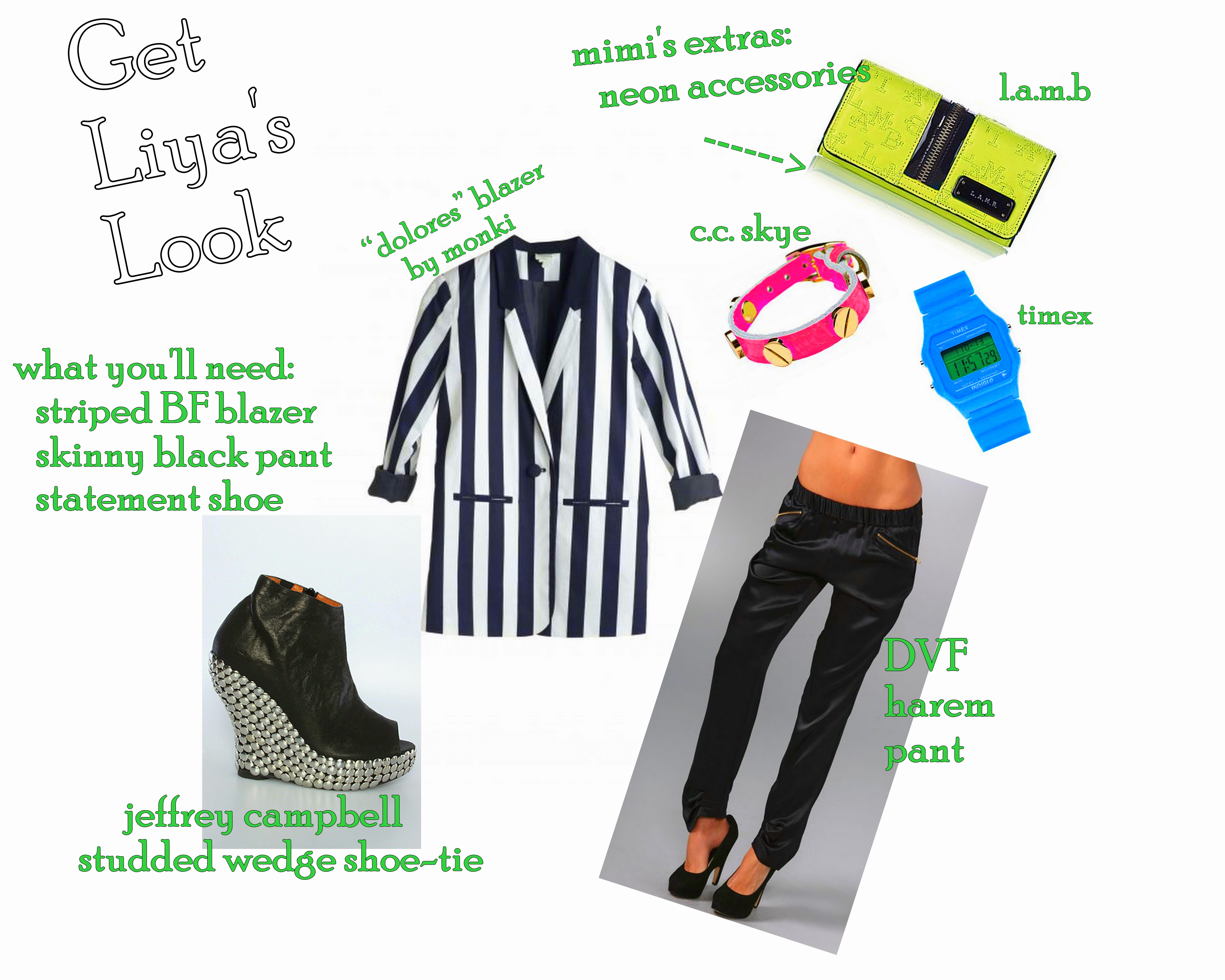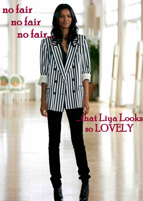 But I got something for you Kebede! You’re not gonna be the only chicster walkin’ around H.E.R.E., showin’ off all that stripey goodness. I am assembling an army of stylish faux referees that will completely show up that devastating… self-esteeming crushing… jaw-to-ground inducing ensemble of yours. Ok, so maybe not completely…or really at all, but mere mortals must try too!