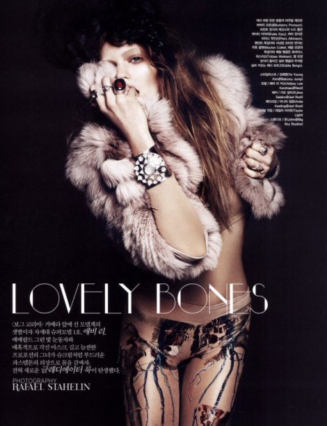 From the impeccable styling to Abby Lee’s “get sooooome” poses, this is the most stellar spread I’ve seen in a while. And the skeletal motif is subtle-chic, without being costumey. Vogue US, you should be taking notes…copious notes.