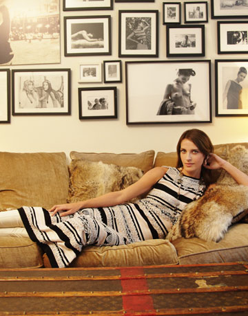 Whatever it is, her place is plain ol’ cool and beyond HighEnd. But in a way that is still warm and homey.  It seems like the type of  space that invites you to both kick your shoes off and be insanely jealous of its overabundance of personality. DYYYYYYINGG over the Louis Vuitton trunk as coffee table.