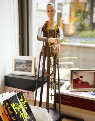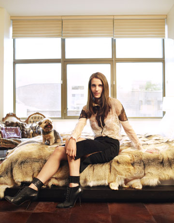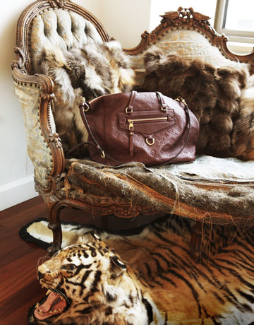 There is something so gothic, yet glam about Ms. Traina’s posh pad. Could it be the ensemble of quirky nicknacks or the fact that she has enough skins to start a petting zoo?