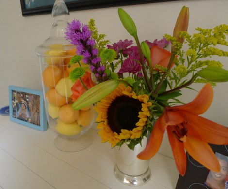 Vibrant flowers on our credenza to pretty up the house for my photoshoot.