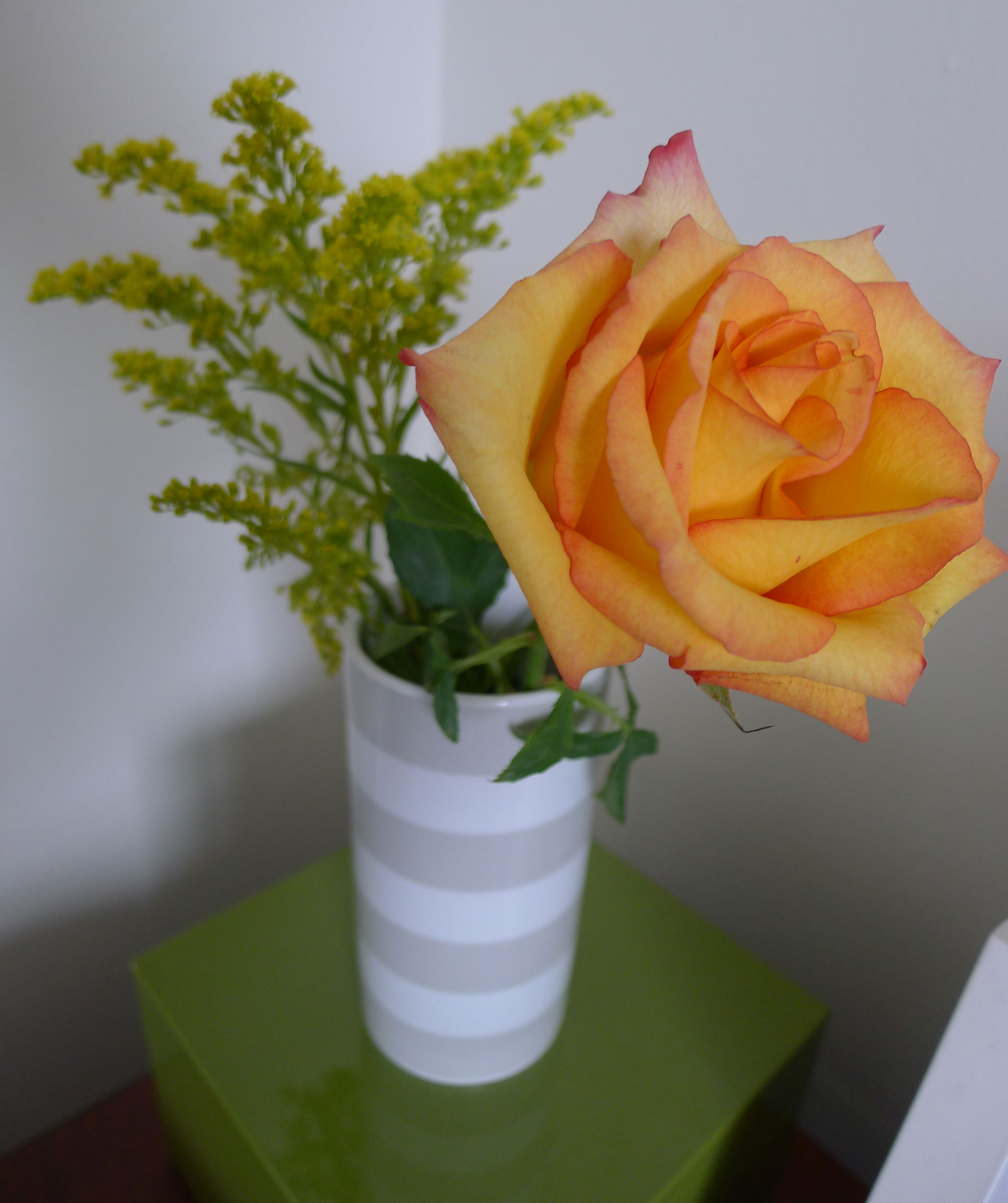 A peachy single rose on my nightstand.