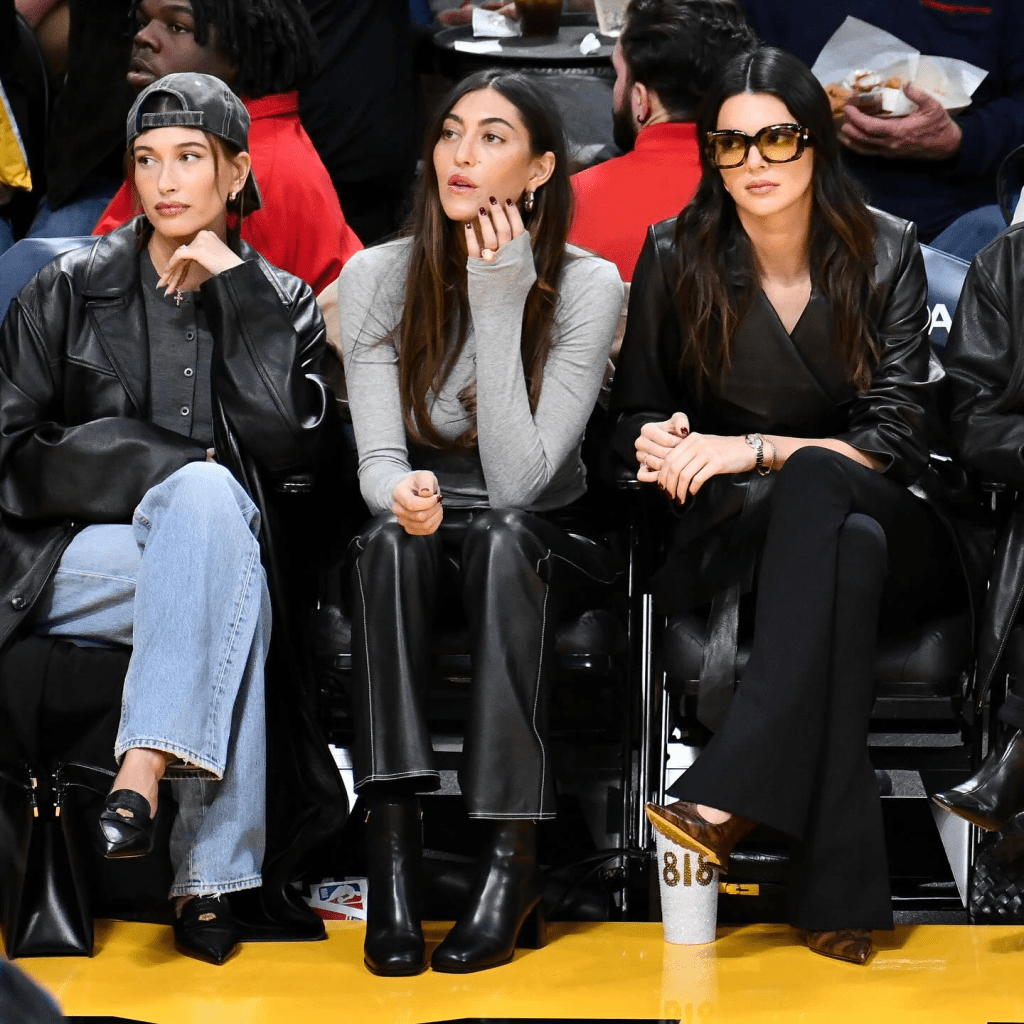 the 2024 version of that iconic image is courtesy of hailey beiber, sarah staud and kendall jenner sitting courtside last month, leaving me gripped with an overwhelming need to recreate this entire vibe.
