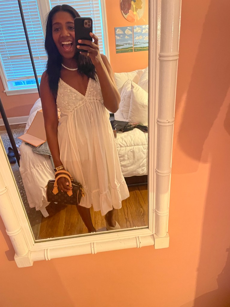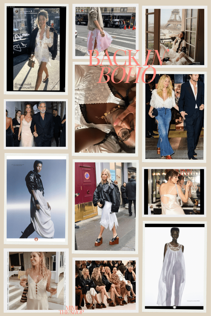 when I bought my Irish lace nightie from a random giftshop in a random castle in Dublin last August, I wasn’t thinking “damn, I can’t wait for boho-chic to come back in 6 months!” no, I was actually thinking, “damn, this will be so irreverent with a leather jacket for a Memphis dinner date! everyone will be so annoyed I’m wearing pjs out…again!” to be honest, I was referencing the Prada s/s 2023 moment, but clearly was better equipped to buy this 60-pound version at Russborough Castle than Miuccia’s $2k style.
