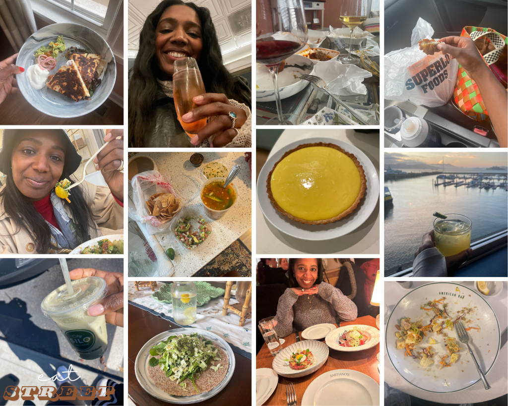 - row 2: nashville’s greenery co. is equal parts totally delicious and aesthetic; maciel’s in memphis for some of the freshest, most consistent mexican east of texas; my dear friend kristi hosted me for dinner and made a restaurant-worthy lemon tart (i revisit this pic weekly!); a perfect spicy marg with a perfect SF backdrop