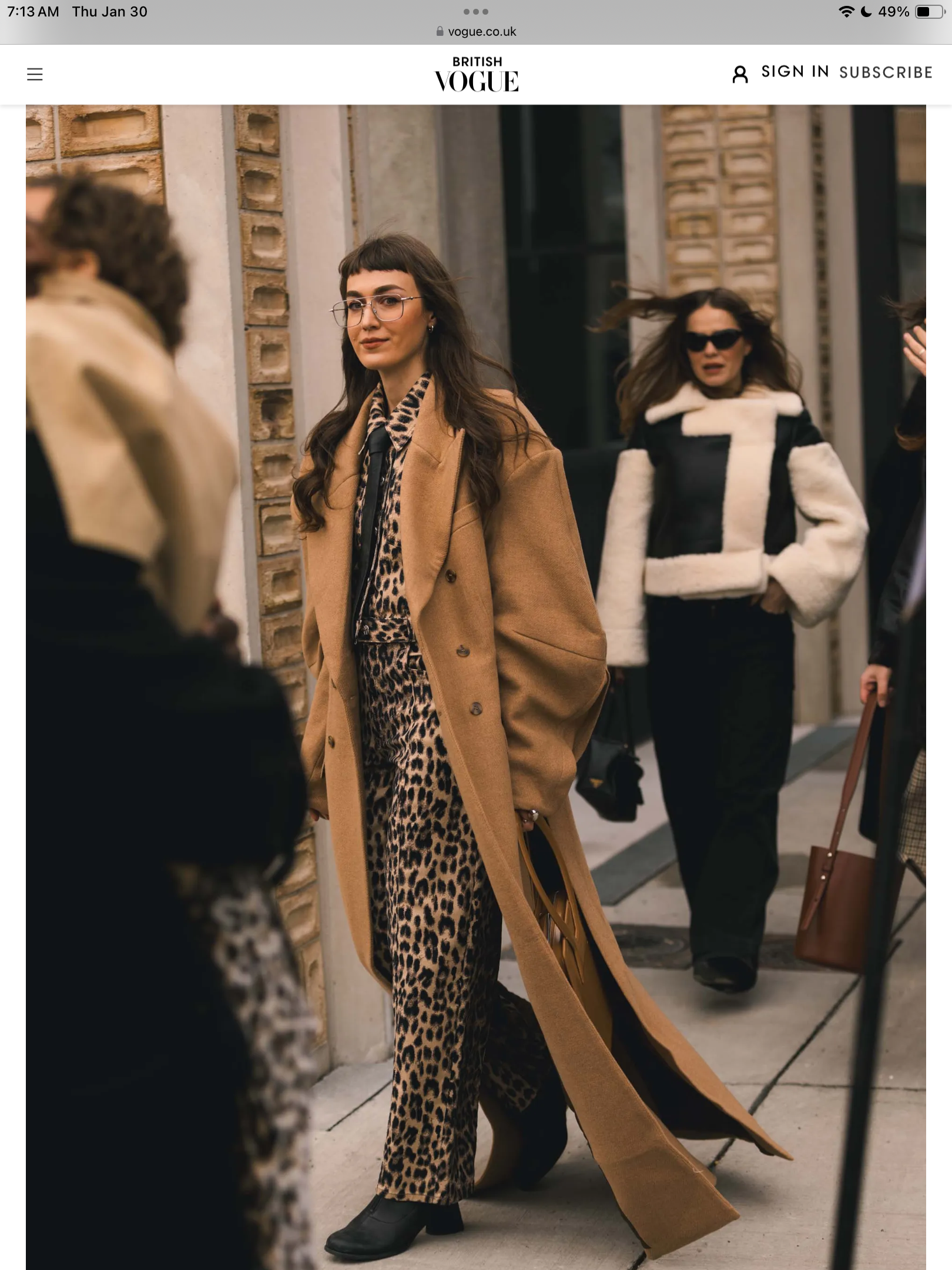 Above— Any good street style shot conveys the context of the moment. It’s very rarely just about the subject in view, and almost always more about what’s swirling around in the background. This one is all about the neutrals, the outerwear and the bags. The impeccable leopard print suit almost obscures the of-the-moment handle of her Laur Ana bag. I cannot adequately express how much I love the puffy bigness of her coat sleeves, and the foreground leopard print (maybe embraced in a between shows hug…) is perfect symmetry. Behind her is shearling for days and the swing of two perfectly unidentifiable bags. As I stated in my ins, we’re going back to our pre-grab bag days. Sorry, Margaux!