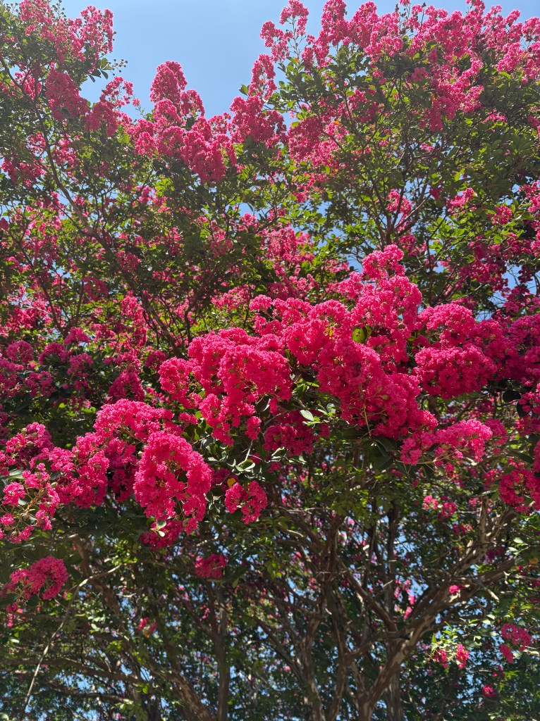 - Crepe Walk— I have added a little exercise to my daily walks in an effort to both slow down as well as to appreciate Memphis’ copious crepe myrtles. I will stand nearly nose-deep into a bloom and not move until I have captured the perfect color name. Grape purple? No, violet…no, Ultraviolet! It’s one of those small things that has turned into a big thing— Are we taking the time to not only see, but to really look at the world around us? My new favorite crepes are Elle Woods (perfect sorority girl pink) on the side of my house and Jane Fonda (80’s aerobic neon) in my neighbors’ backyard.