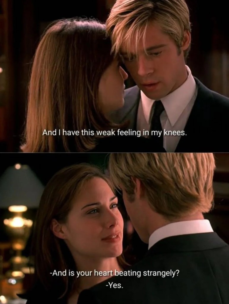 One thing I did not know is that Claire Forlani and Brad Pitt allegedly dated briefly after wrapping this film, and who the hell could blame them? They were visually stunning together, and dare I say she was one of his best on-screen partnerships! (#1 being Jolie in Mr. and Mrs. Smith, obvi).